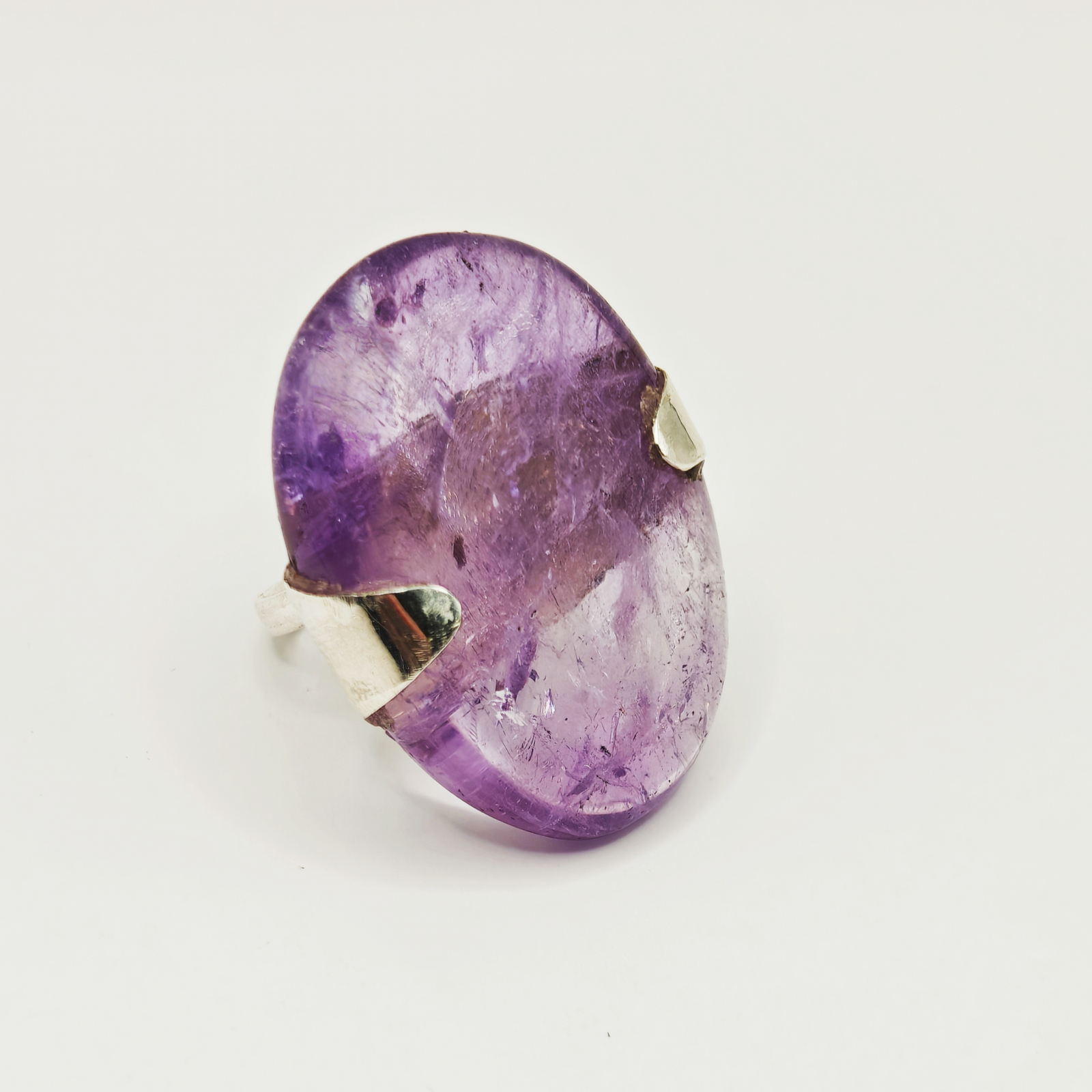 Inel reglabil din Ametist transparent, cristal mare, montat în argint