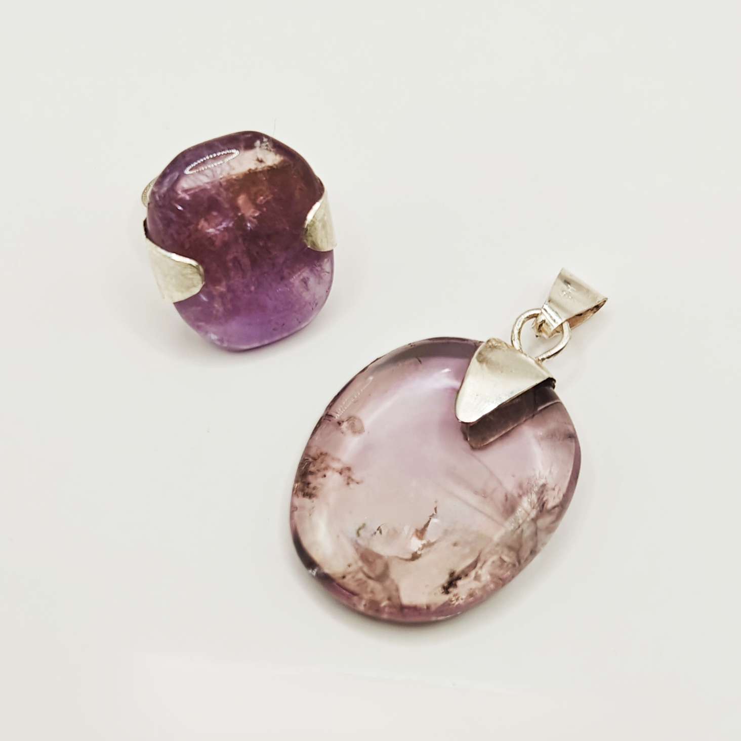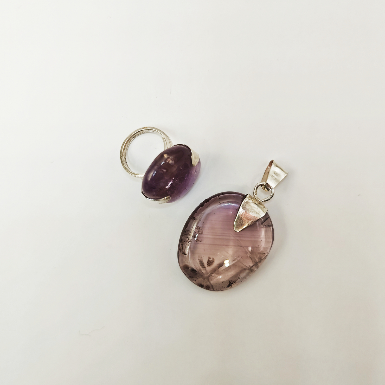 Set Ametist transparent - pandantiv și inel reglabil, în argint