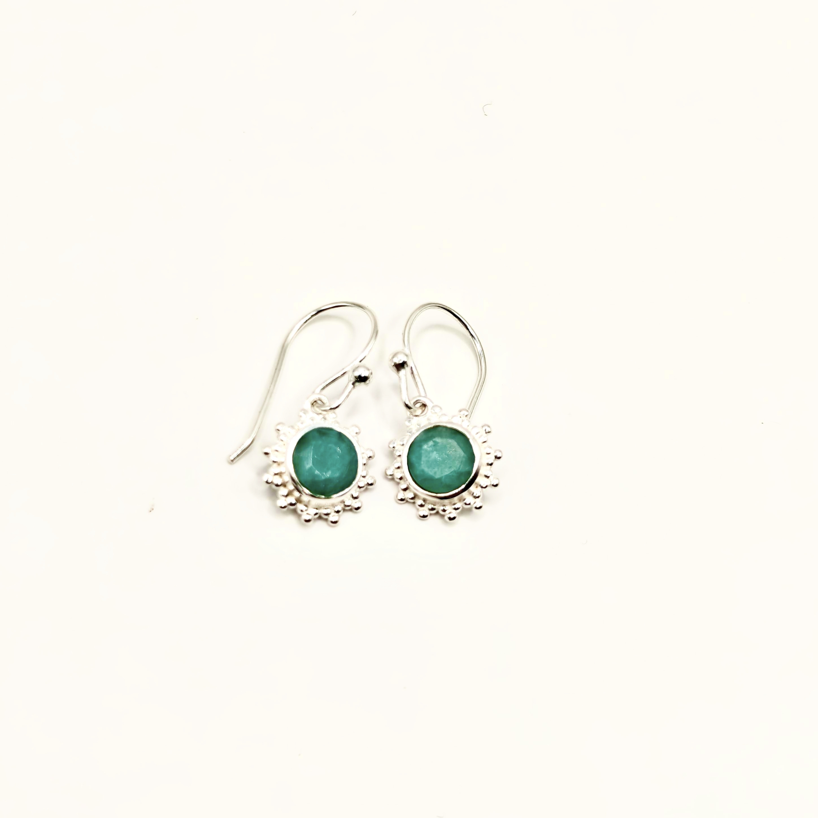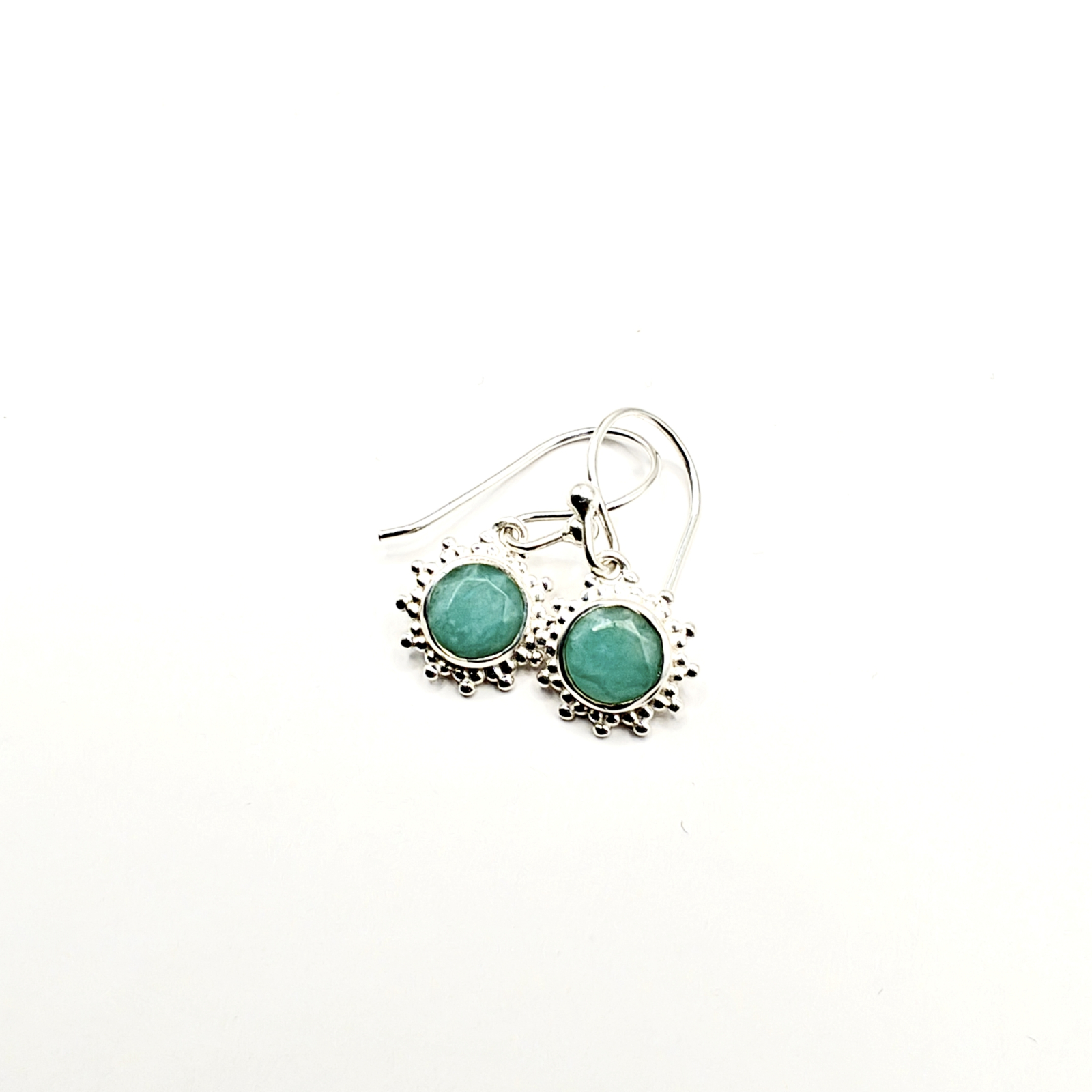 Cercei Amazonit, închidere tip tortiță, montați în argint