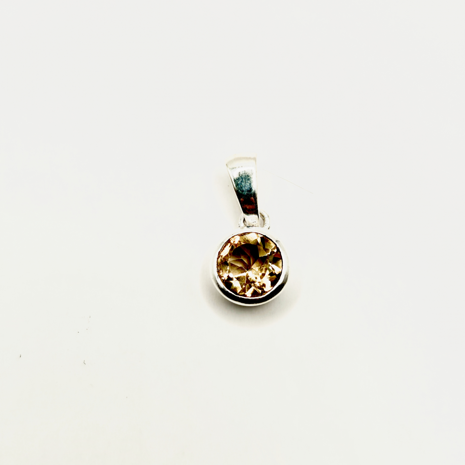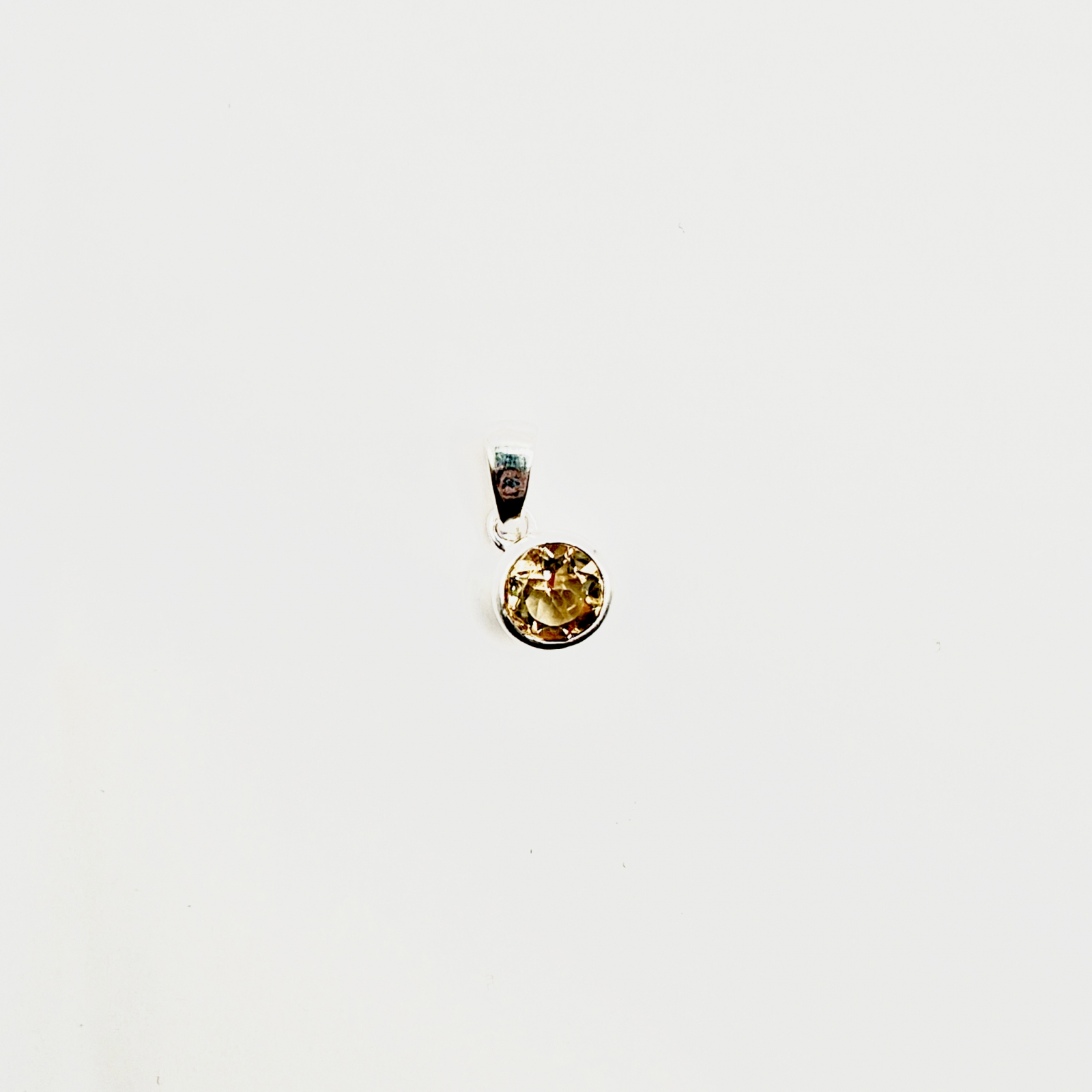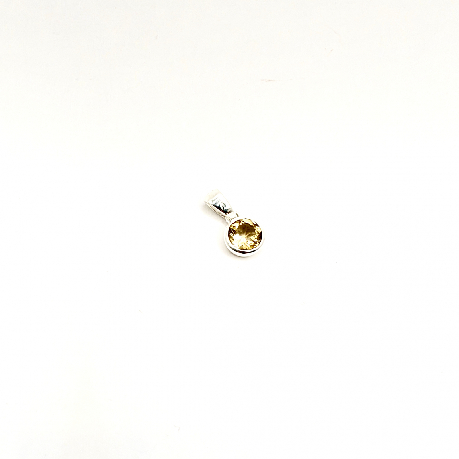 Pandantiv din Citrin, montat în argint, rotund, fațetat