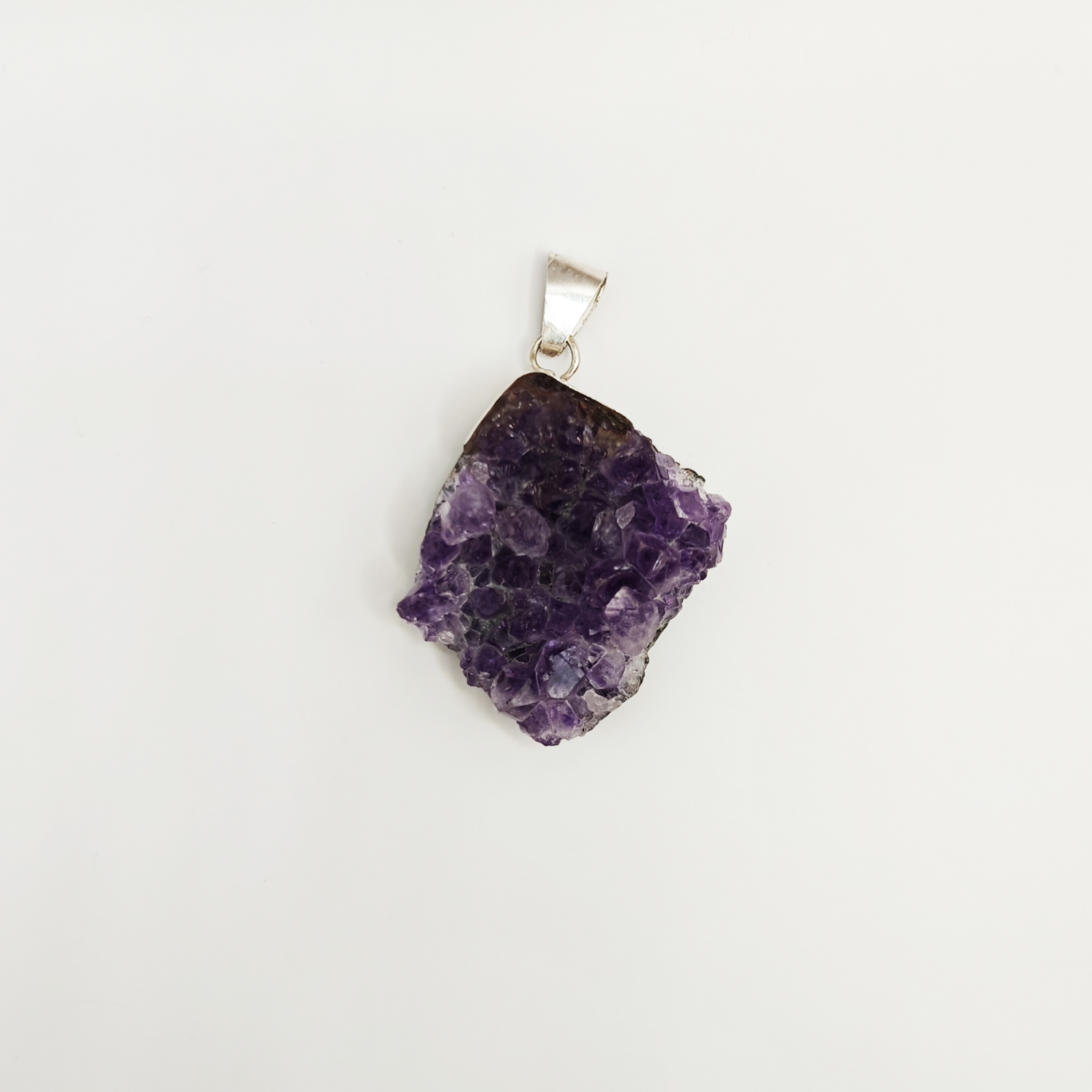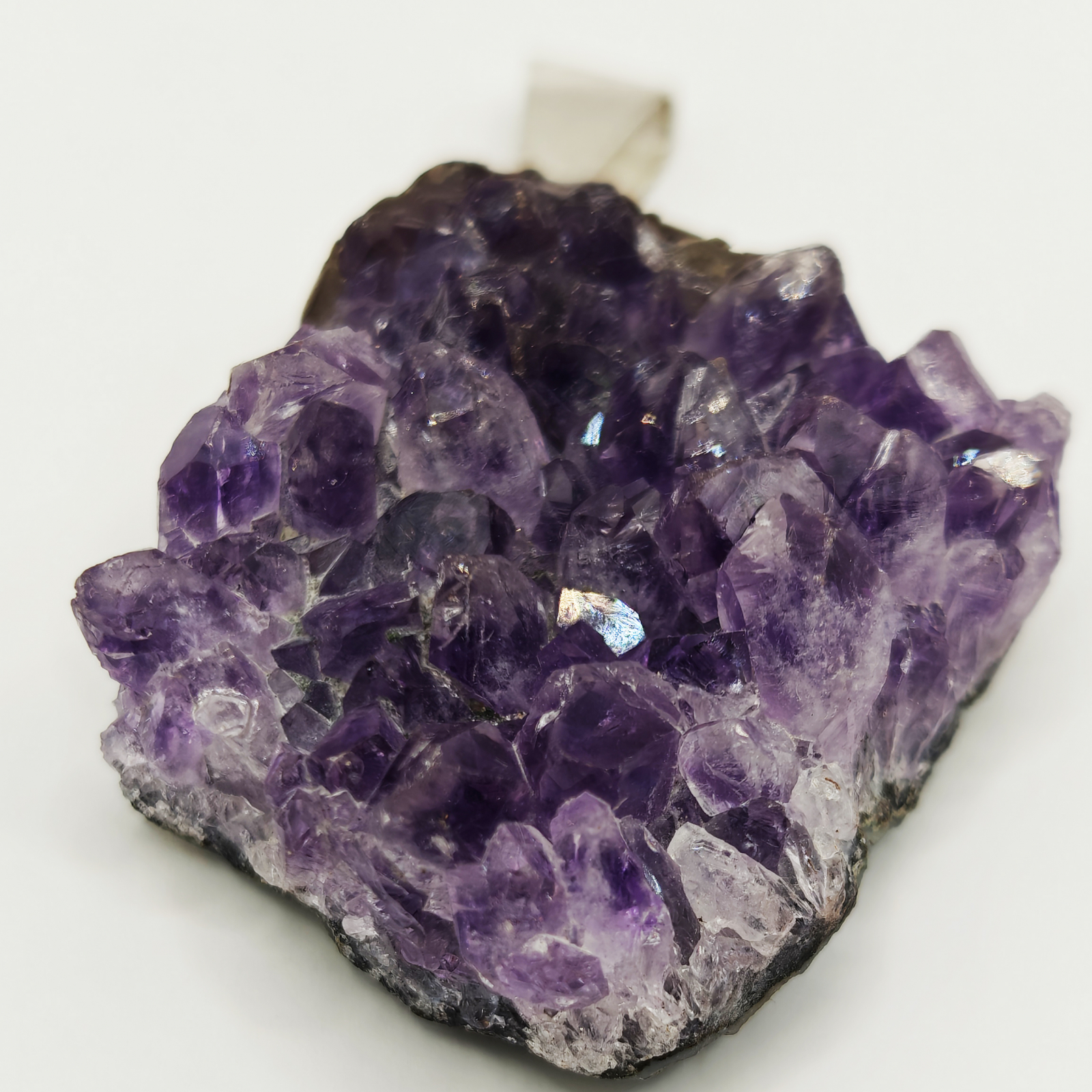 Pandantiv Ametist, sub formă de cluster/ floare de mină, montat în argint