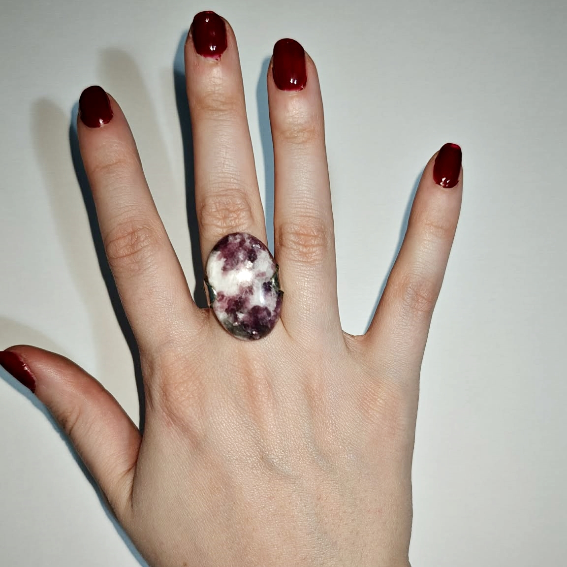 Inel reglabil din Lepidolit, montat în argint 925