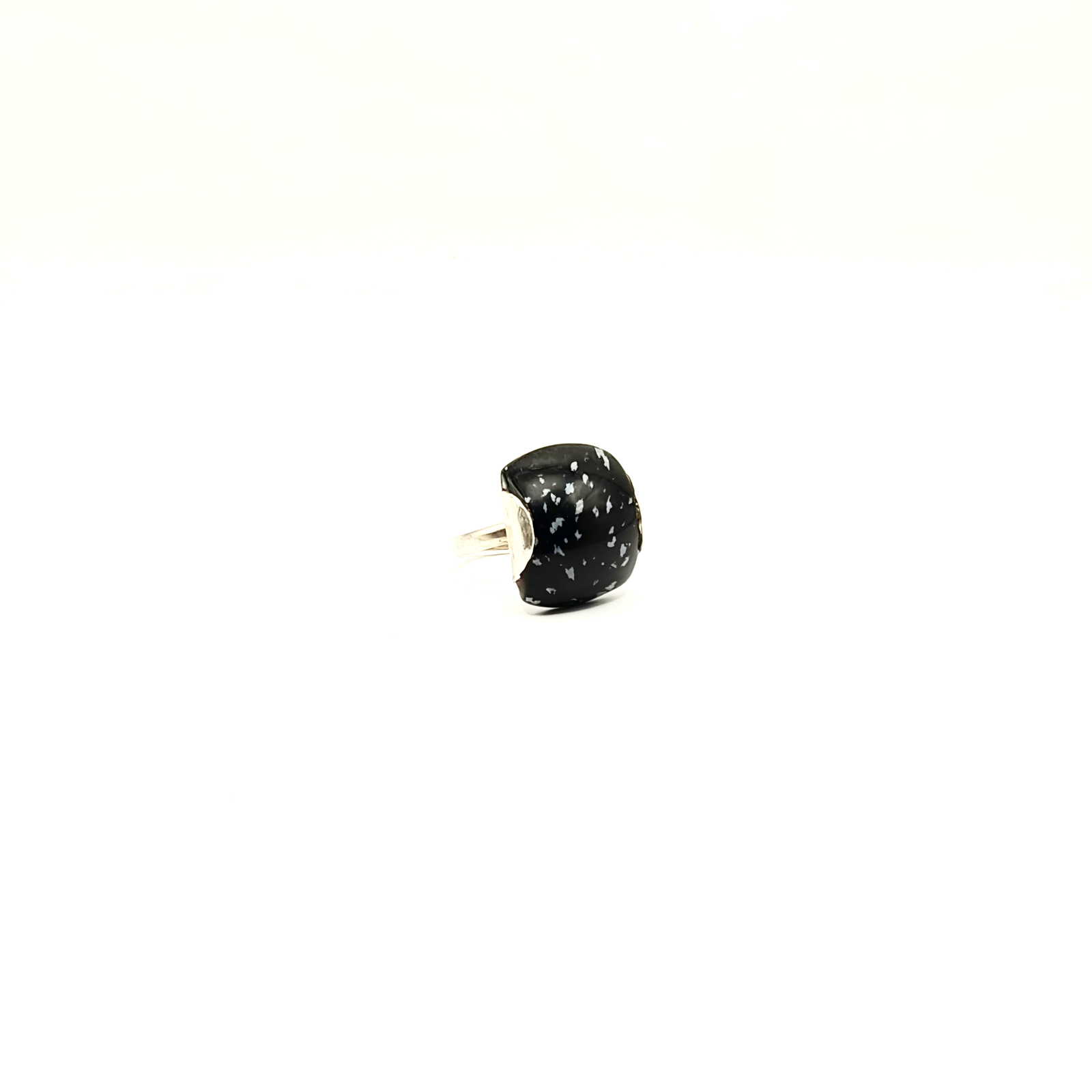 Inel Obsidian Fulg de Nea: reglabil, montat în argint 925