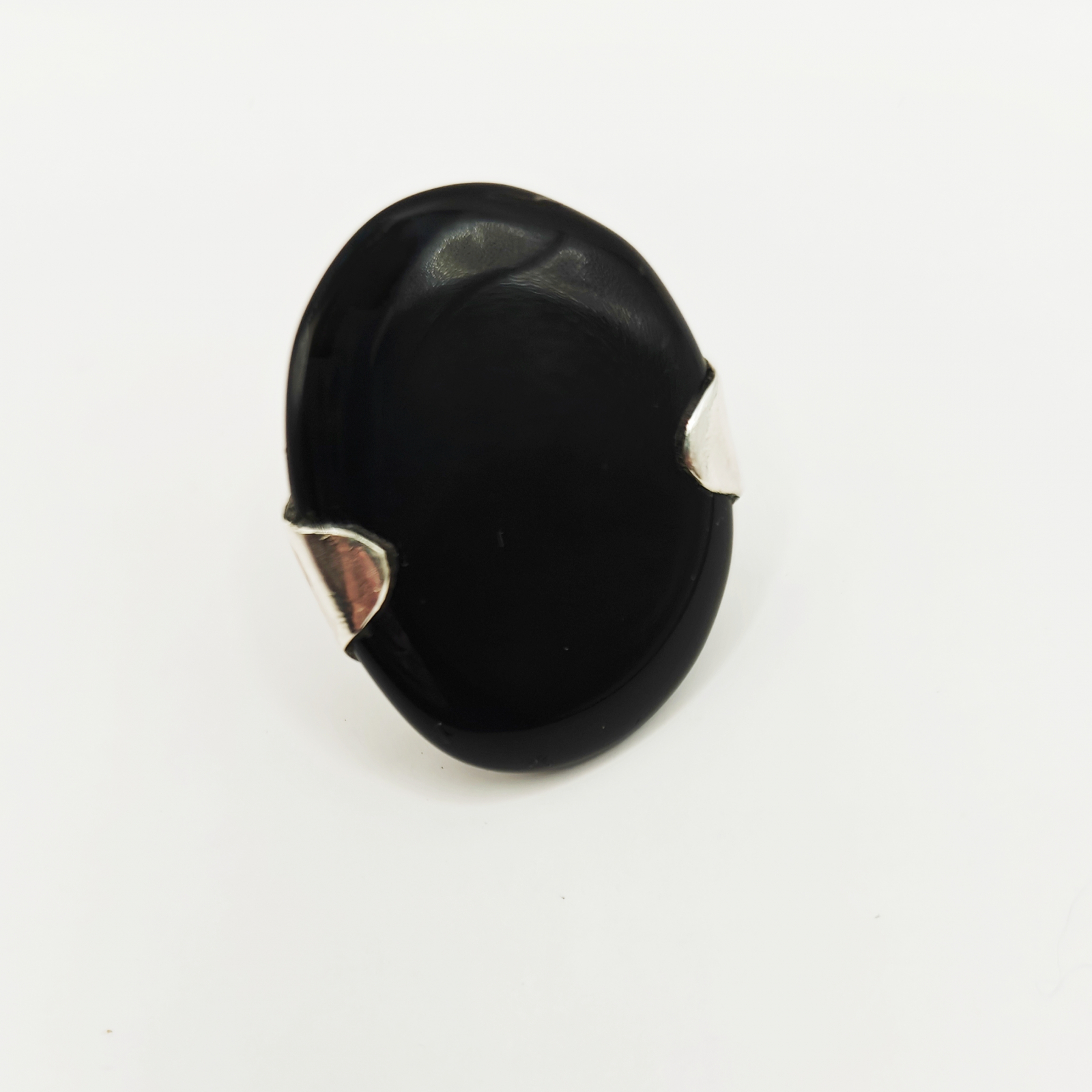Inel reglabil din Obsidian negru, cu piatră mare, montat în argint 925