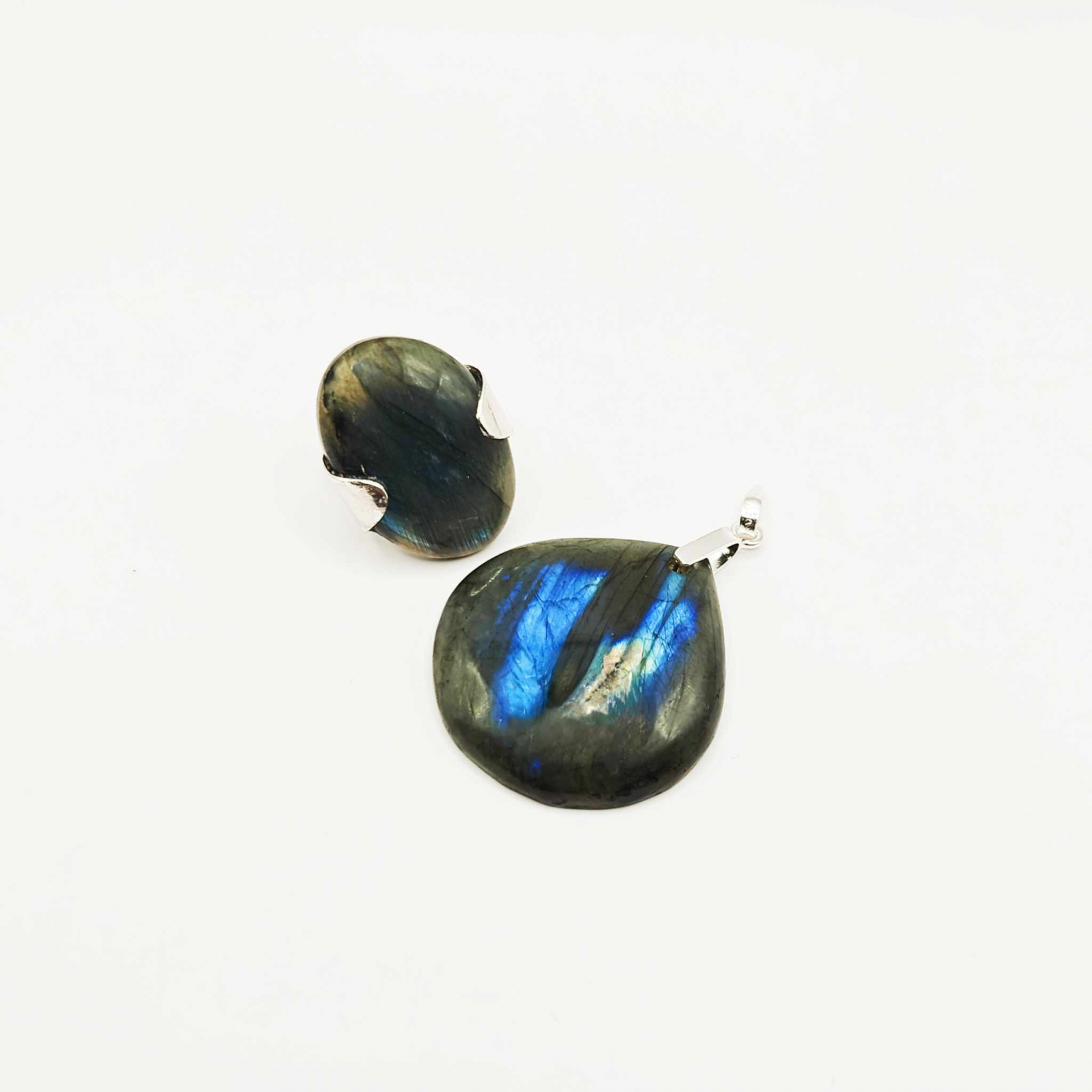 Set Labradorit - pandantiv și inel reglabil, în argint 925