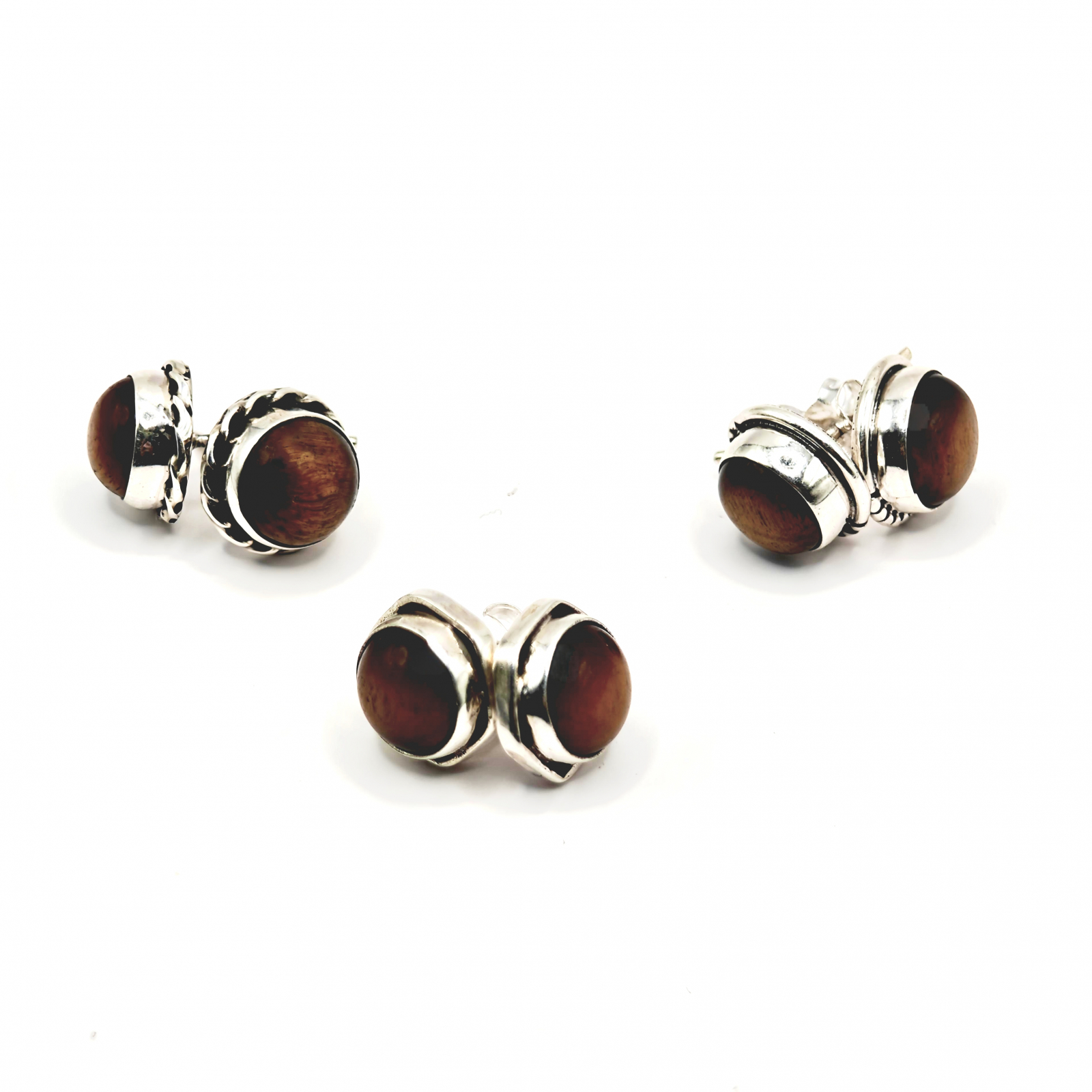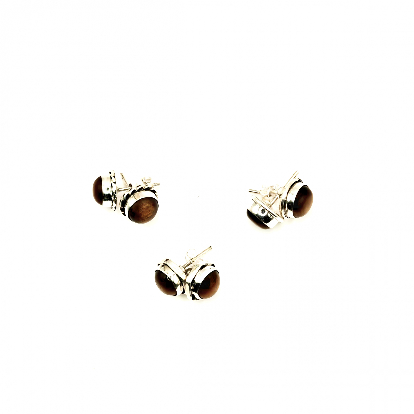 Cercei Ochi de Tigru, cu design în argint și închidere cu șurub