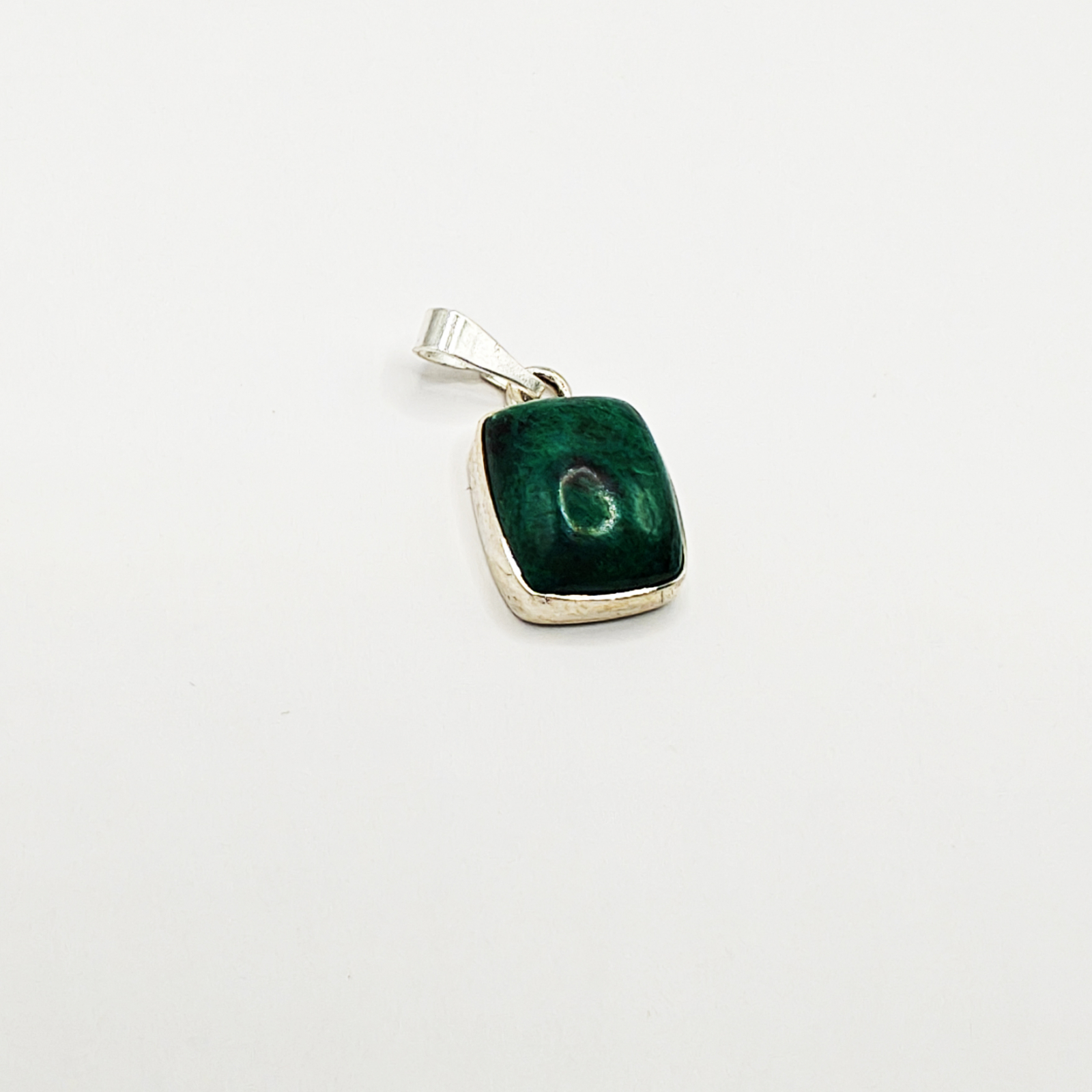 A. Pandantiv Crisocola, tăietură în stil cabochon, montat în argint