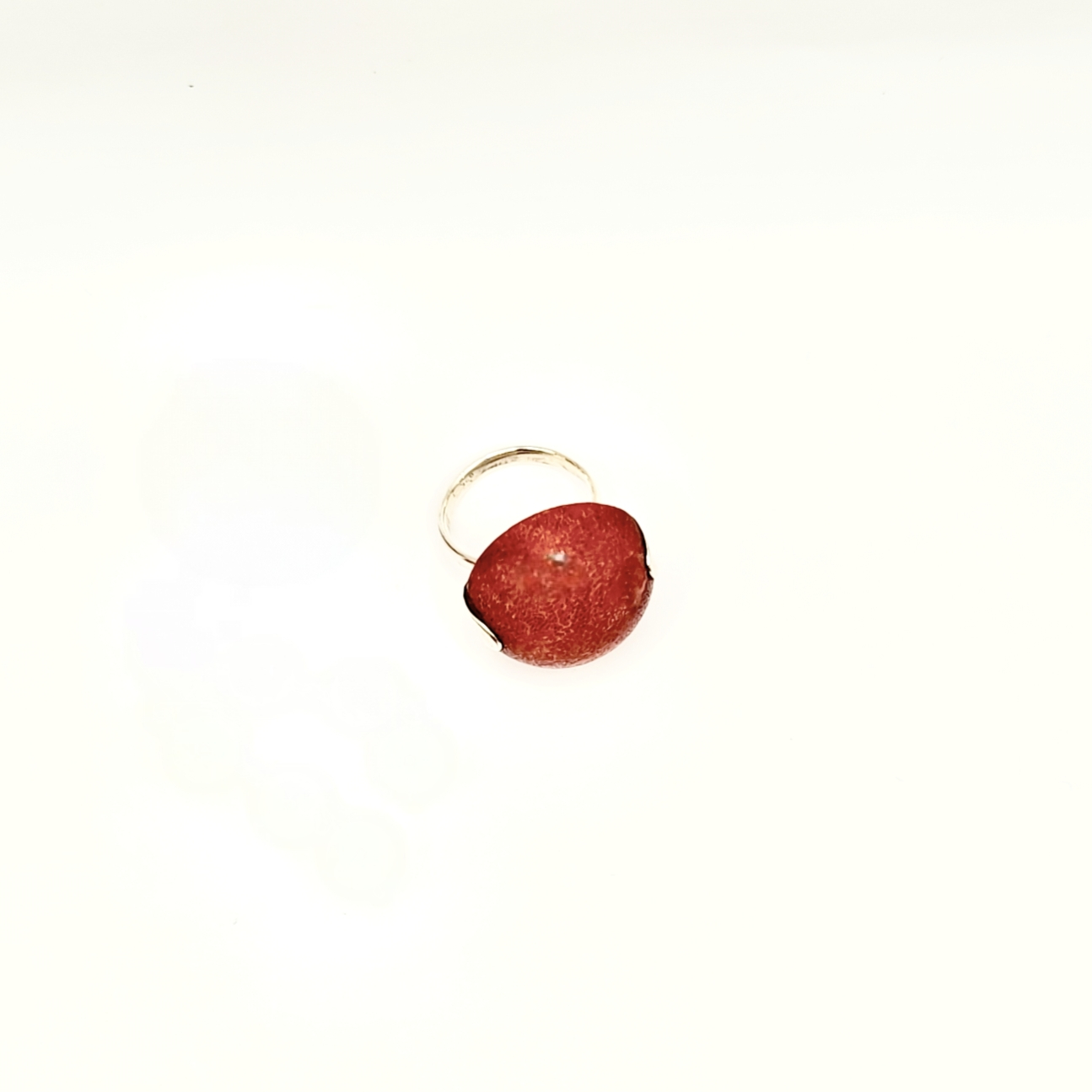 B. Inel reglabil cu piatră din Coral spongios, de 2,5cm x 2cm, cu montură în argint, proveniență China