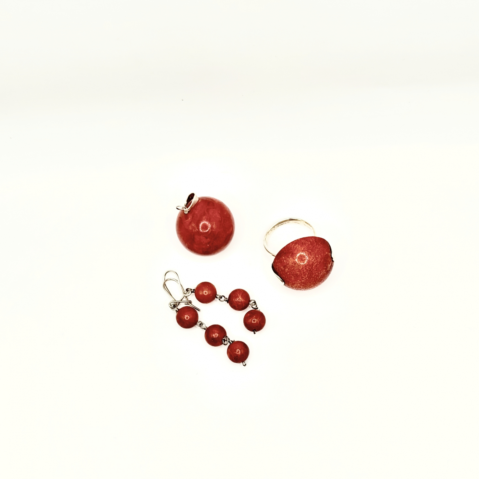 Set Coral Spongios - pandantiv, inel și cercei cu tortiță, în argint
