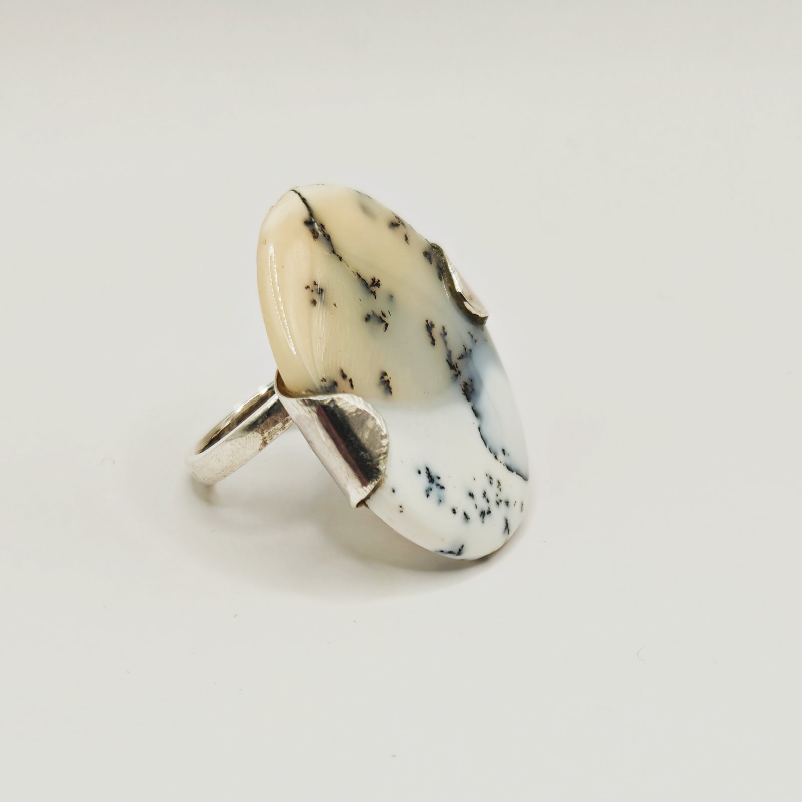 B. Inel reglabil din Opal Dendritic, cu piatră mare, montat în argint 925